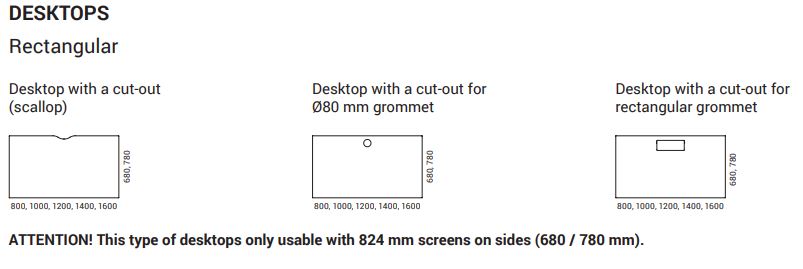 Stolová deska MY SPACE s výřezem a elektrokrabicí s hloubkou 68 cm - různé šířky