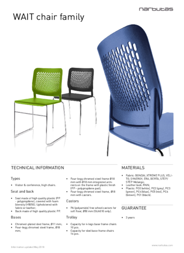 Konferenční židle WAIT s područkami je navržena především do jednacích a zasedacích místností, případně bude dobře fungovat i jako posluchárenská židle. Na výběr máte tři typy podnoží a sedm barevných provedení. Jakou variantu zvolíte?
