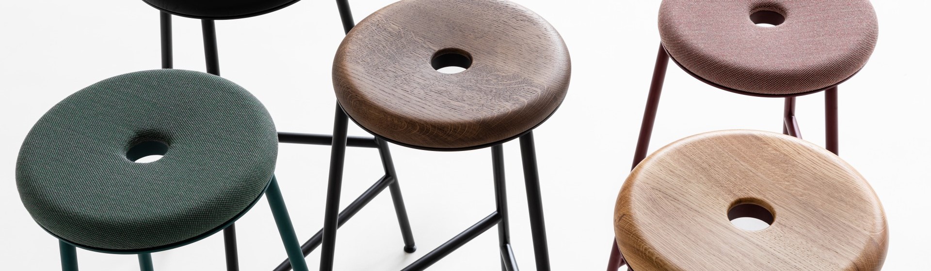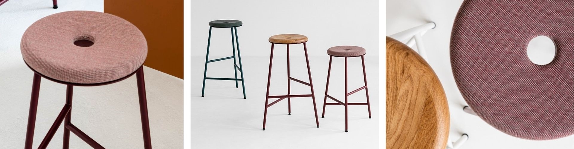 Barové židle ROTOR od designéra Piotra Kuchcińského zaujmou originálním sedákem s otvorem a potěší univerzální charakterem. Sedadlo je k dispozici dřevěném a měkkém čalouněném provedení. Díky možnosti dokončení v široké škále barev je model Rotor vhodný pro mnoho bytových a komerčních interiérů. Hodí se pro obytné, hotelové, gastronomické a kancelářské interiéry. Stoličky jsou navrženy ve dvou výškách: 65 a 77 cm. Nejcharakterističtějším prvkem kolekce je otočné sedadlo s centrálním otvorem pro snadné uchopení a přenášení židle. Jeho ergonomický tvar s mírně konkávním povrchem a zaoblenou hranou poskytuje neočekávané pohodlí. Křehké ocelové nohy jsou spojeny příčníky ve třech výškách, aby se usnadnila pohodlná podpora nohou. Návrháři se podařilo získat mimořádně lehkou, vizuálně podobu ocelové základny s extrémně stabilní a odolnou strukturou.
