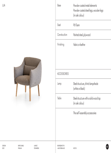 Kolekce LUA, kterou pro značku NOTI navrhli designéři Pawlak&Stawarski, je osobitou řadou čalouněného nábytku, která zahrnuje model křesla i dvoumístné a třímístné pohovky. Jednoduché tvary v kombinaci s měkkými polštáři působí velmi elegantně. Kolekce je vybavena dvěma typy základen: k dispozici je kovová a dřevěná varianta, přičemž dřevěná podnož dodává tomuto nábytku a následně celému interiéru příjemnou domácí atmosféru. Specialitou kolekce LUA jsou doplňky, jako je lampa se stínidlem nebo dřevěný stolek, které jsou připevněny ke konstrukci některých modelů a tvoří jeho přirozenou součást. Tyto kousky skvěle zapadnou jak do soukromých prostor, tak do kanceláře, hotelu a jiných komernčích interiérů. Hledáte ten pravý sedací nábytek pro vaše prostory, ale potřebujete pomoci s výběrem? Naši specialisté vám rádi poradí - kontaktovat je můžete zde.