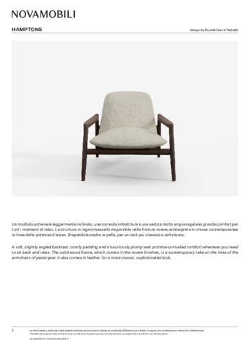 Sofistikovaná elegance, lehký závan retra a bezkonkurenční pohodlí. Měkké křeslo HAMPTONS s mírně nakloněným opěradlem se postará o ničím nerušený relax v obýváku, ložnici nebo hotelovém pokoji. Bohatě polstrovaná skořepina je čalouněná textilií nebo kůží z bohaté nabídky barev včetně možnosti dodání svého vlastního materiálu. Potah je snímatelný, což usnadňuje údržbu. Rám je z masivního dřeva. Hledáte-li bezkompromisní kombinaci estetiky, komfortu a luxusu, HAMPTONS je tím pravým.