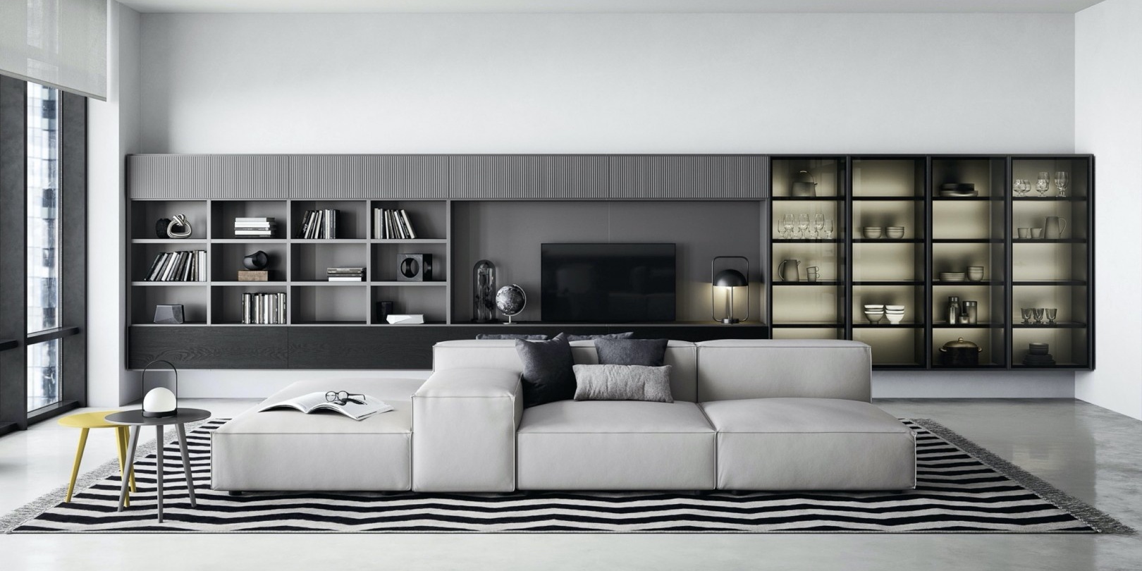 Obývací stěna Wall 30 se bude vyjímat v každém interiéru. Stěnový systém se třemi různými hloubkami, posuvnými systémy a uzavřeným úložným prostorem zpříjemní obývací pokoj i ložnici a zajistí dostatek prostoru pro knihy, dekorace a další nezbytnosti, které chcete mít po ruce nebo na očích.