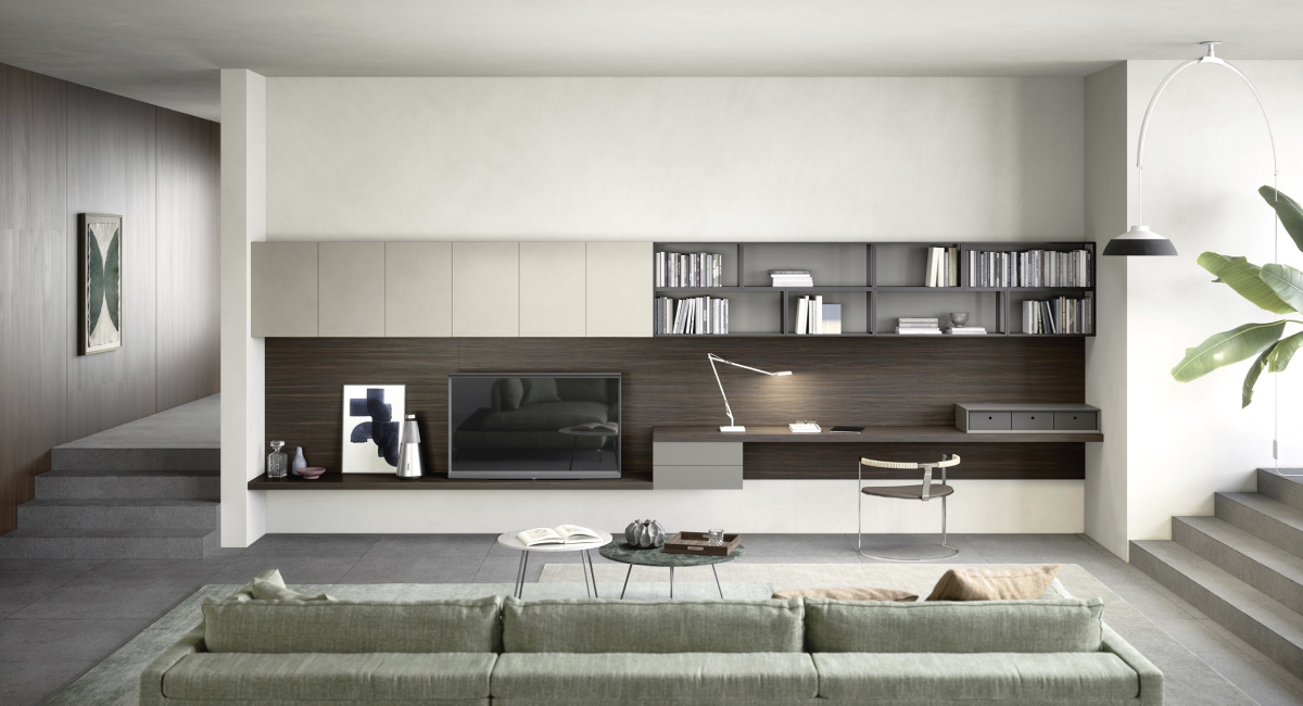 Kombinace moderního policového systému Pontile a Outline spolu tvoří obývací stěnu, která se hodí do stylového interiéru. Uvedená cena platí pouze pro zobrazenou sestavu. Obývací stěny značky Novamobili mohou mít různé barevné kombinace a postavení. Neváhejte nás kontaktovat. Pomůžeme vám s výběrem toho nejideálnějšího kousku.