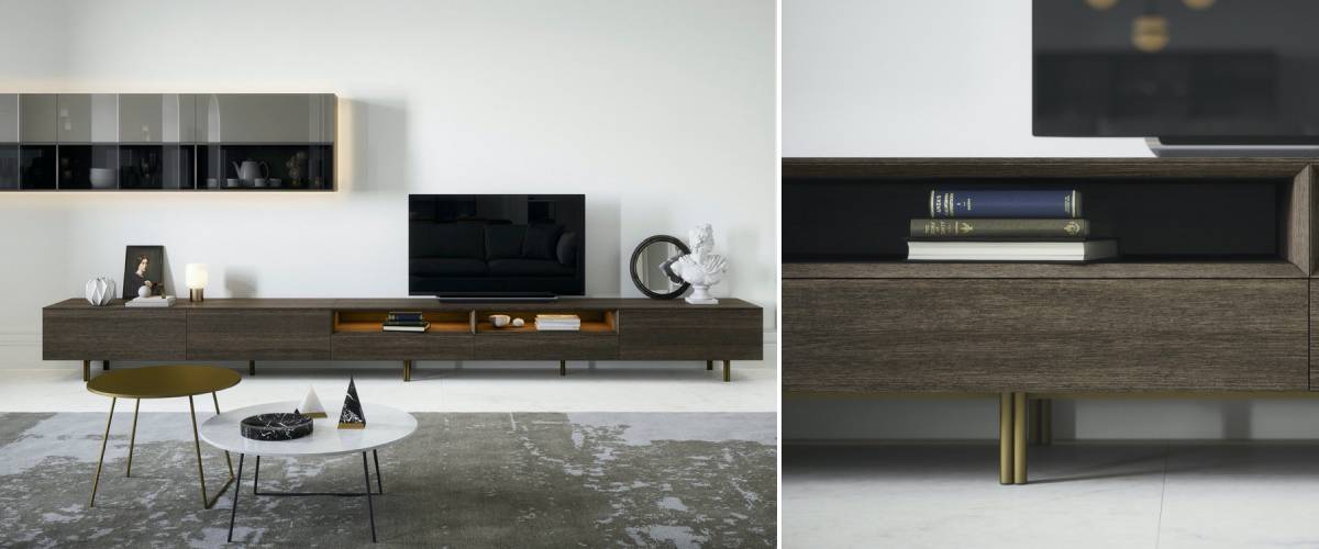 Klíčovým kouskem perfektně uspořádaného stylového obýváku je vhodně padnoucí obývací stěna, do které můžete efektivně umístit elektroniku, ale i knihy, dekorace a další potřeby. Modulová obývací stěna TETRIS od špičky v oboru NOVAMOBILI je vyrobena z dýhy, lakovaného hliníku i eko-dřeva a kombinuje tak top kvalitní materiály a moderní design. Její tmavé provedení s kresbou dřeva působí velmi elegantně. K dispozici jsou vám otevřené regály, zásuvky, i prosklená vitrína. Oceníte jistě také osvětlení. Spodní modul stěny stojí na vyvýšené podnoži. Obývací stěny značky NOVAMOBILI mohou mít různé barevné kombinace a postavení. Neváhejte nás kontaktovat. Pomůžeme vám s výběrem toho nejideálnějšího kousku.