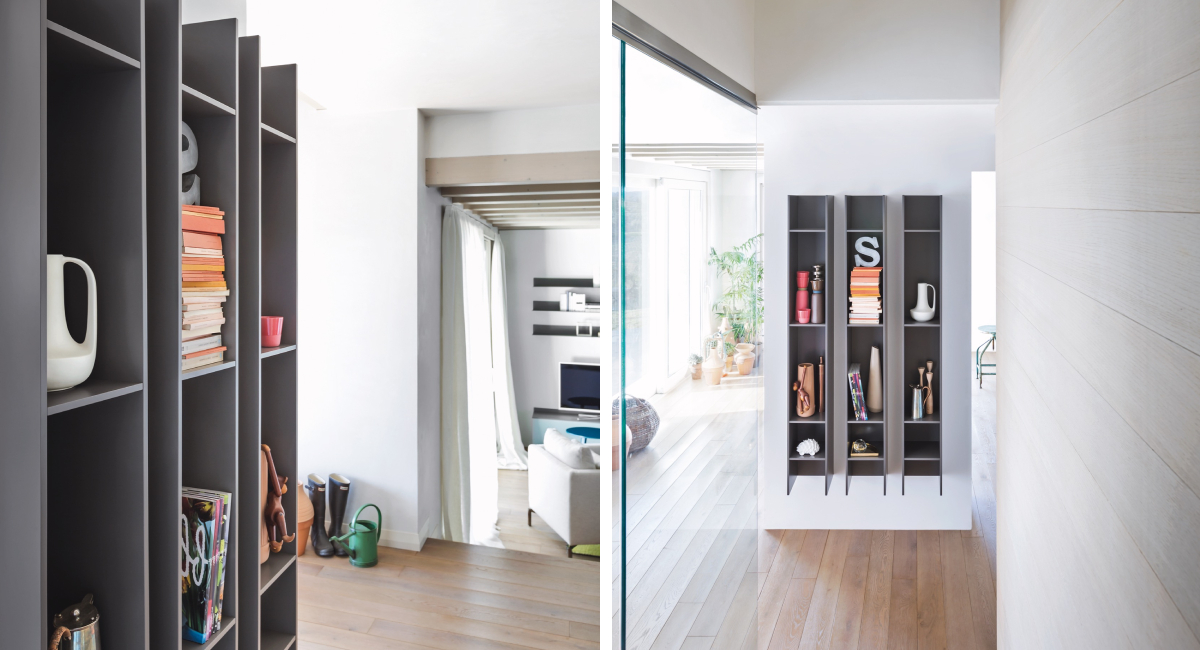 Jak již bylo řečeno, modulární policový systém BUTTERFLY si můžete plně přizpůsobit vašim požadavkům. K tomuto kusu nábytku lze dokoupit různé typy modulů, díky kterým si vytvoříte kousek, který nikdo jiný nemá. Policový systém, který lze pověsit na zeď nebo opřít o stěnu, může obsahovat: