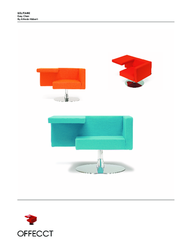 Když designér Alfredo Häberli navrhoval křeslo Solitaire, myslel při tom na způsob práce a na to, jak se liší od toho v minulosti. Tento stabilní kus nábytku má různé možnosti kombinující funkci a formu. Postranní prostor je určen pro laptop, aktivní odpočinek při čtení, ale třeba i pro odpolední kávu či malé jídlo. Křeslo je vhodné do kanceláře i do domácnosti a zaujme nejen svou perfektní funkčností a pohodlím, ale i geometrickým vzhledem. Díky možnosti výběru několika barev textilního či koženého čalounění si tento kousek uzpůsobíte svému vkusu či zbytku vybavení interiéru. V případě jakýchkoli dotazů nás neváhejte kontaktovat.