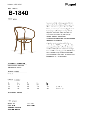 Historie polské společnosti Paged, která je známá svým mistrovstvím v ohýbání dřeva, sahá až do roku 1881. Jako jedna z nejvýznamnějších firem ve svém oboru navazuje na tradici Michaela Thoneta. Díky kombinaci tradičního řemesla a moderních technologií vytváří esteticky přitažlivý, ergonomický a odolný nábytek. Židle, křesla, barové stoličky, stoly a další produkty jsou oblíbené po celém světě. Precizně zpracované kousky se hodí jak do domácností, tak do komerčních prostor, jako jsou restaurace, hotely nebo kanceláře.