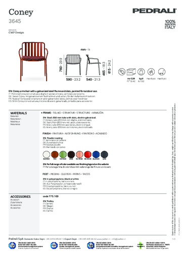 Funkčnost, komfort a estetika. To vše se snoubí v židli CONEY, kterou navrhlo studio CMP design jak pro veřejné, tak pro soukromé terasy i zahrady. Kostru židle tvoří zakřivený trubkový rám, sedák a opěrák je z lisovaného a tvarovaného plechu. Tato kombinace tvarů a křivek zajišťuje pevnost a ergonomii, stejně jako vysokou vizuální hodnotu. Můžete vybírat z několika atraktivních barev laku. CONEY je stohovatelná (až do 8 kusů), což usnadňuje její uskladnění i manipulaci. Pro ještě více pohodlí židli doplňte čalouněným podsedákem. Prozkoumejte celou kolekci a vyberte pro své prostory to nejlepší!