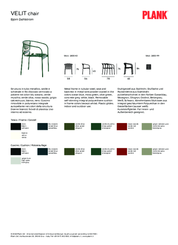 Designér Björn Dahlström myslel při navrhování židle VELIT na všechno. Odolnost, stabilita i tvar kopírující páteř zajistí pohodlné posezení na zahradě nebo terase, ale poslouží i u jídelního stolu. Rám židle je tvořen ocelovými trubkami dostupnými v několika barevných provedeních práškového nástřiku, stejně jako sedák s opěrákem z ocelových drátů. Díky stohovatelnosti snadno židle uskladníte. Také můžete dokoupit praktické filcové kluzáky. Nechte se unést hravostí a pohodlím a vybavte své prostory kouskem, který zaujme na první pohled.