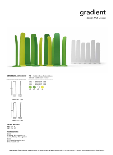 Sháníte pro své prostory kousek, který se pyšní atypickým designem? Pak je pro vás hravá dekorace GRADIENT z polyethylenu tou správnou volbou. Kousek, který dokonale rozčlení jakýkoliv prostor, je k dispozici v několika barevných provedeních a ve dvou velikostech. K doplňku je možné dokoupit písek na zatížení, díky kterému zůstane kousek na jednom místě, nebo připevnění k zemi pomocí šroubů a hmoždinek.