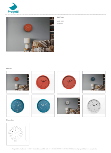Italská značka PROGETTI se zabývá výrobou doplňků nejen do domácích, ale i kancelářských interiérů. U svých produktů si PROGETTI zakládá na vysoké kvalitě, moderním a originálním designu, poctivé řemeslné výrobě a respektu k životnímu prostředí. V portfoliu značky najdete hodiny, kukačky, věšáky nebo stojany na deštníky. Finální produkty z dílny PROGETTI jsou navrženy tak, aby uspokojily vysoké požadavky a nejnáročnější vkus, jsou propracované do každého detailu, využívají přírodní a ekologické materiály a zároveň jim nechybí jednoduchý a emocionální design.