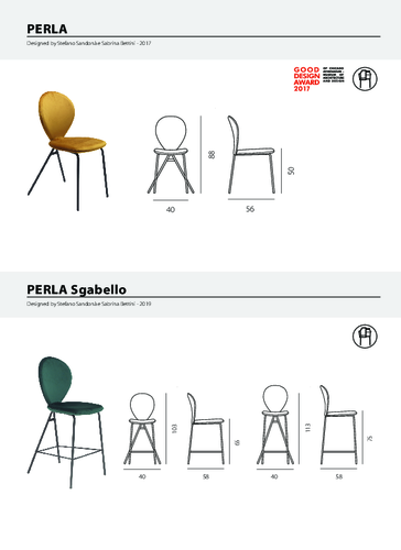 Barová židle Perla pochází z dílny designérského dua Stefano Sandonà a Sabrina Bettini. Díky svému originálnímu tvaru je rozpoznatelná na první pohled. Oválný opěrák, zajímavě řešená kovová podnož a detaily bočních zipů z židle dělají luxusní kousek, který rozzáří jakoukoli jídelnu i restauraci. Polstrování z pružného polyuretanu tvarovaného za studena je doplněno kvalitním čalouněním. Vybírat můžete z široké škály barev i materiálů. Kožené provedení je možné pouze při objednávce 4 a více kusů. Povrch lze snadno omýt, je žáruvzdorný a nesnímatelný. Podnož je k dispozici v několika variantách. Tak dodejte svému domovu nebo podniku jiskru a pohodlí! Barovku nabízíme ve nízké verzi. V případě jakýchkoli dotazů nás neváhejte kontaktovat.
