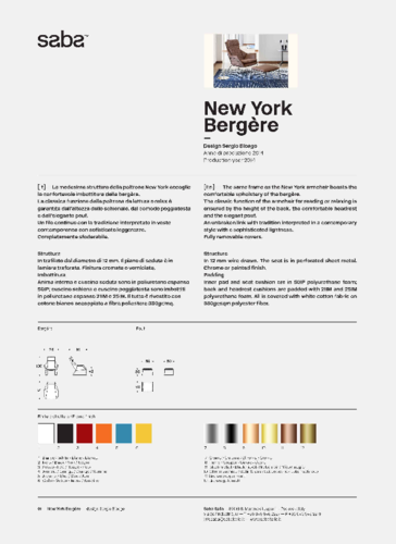 Italský designér Sergio Bicego dal řadě nábytku, která nese jméno Velkého jablka do vínku futuristické linie spojené s nostalgickými prvky retra. Tak, jako je New York městem mnoha tváří, i tato kolekce může být hravá a kreativní, ale zároveň i elegantní a luxusní. Zahrnuje stylová křesla, modulové sedací soupravy, podnožku, venkovní nábytek i postele. Hodí se jak do soukromých, tak i veřejných prostor a zcela nepochybně se stane dominantou, kterou nikdo nepřehlédne. Maximální komfort je samozřejmostí.