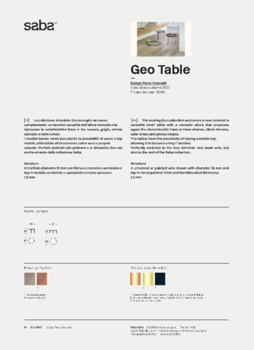 Geo je řada nábytku, která sehraje hlavní roli v domácnosti i komerčním prostoru. Je velkorysá, ale nenarušuje celkový dojem. Je přívětivá, měkká a působí moderně. Název kolekce odkazuje na organické tvary poufů, křesel i sedačky, které sice působí objemně, ale přesto jsou lehké. Proporce i detaily byly navrženy s maximální pozorností tak, aby objekty působily harmonicky a stylově.