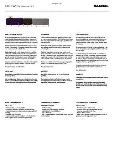 Designér Isaac Piñeiro přichází s originálními poufy, které vytvořil pro kolekci ELEPHANT. V těchto malých kusech nábytku otiskl svou inovativní vizi, kterou převrací dosavadní vnímání nábytku pouze jakožto funkčních prvků interiérů, a vnáší do nich svého uměleckého ducha. Pro tuto kolekci vybral materiály, které odolávají času, jako je dub, měď a grafit. Jednoduché geometrické čtvercové a obdélníkové designy mají zaoblené hrany, aby poskytly příjemnější posezení a uhlazenější vzhled. Rodina produktů zahrnuje tři poufy o různých rozměrech. Poufy jsou všestranné se vejdou do jakéhokoli prostředí jako stolička v elegantní kavárně, malé ostrůvky na hotelové recepci a další.