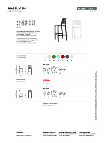 S•CAB podporuje povědomí o životním prostředí a omezuje plýtvání. Důkazem je zavedený proces, který společnost používá: použitý plast se nelikviduje, místo toho se použije znovu, čímž se redukuje množství potenciálně znečišťujících odpadních materiálů. Koloběh je následující: od suroviny k produktu, od produktu k odpadu, od odpadu po recyklovaný materiál, od recyklovaného materiálu po nový produkt. Takto vzniká kontinuální a trvalý cyklus opětovného používání. Kolekce židlí GO GREEN je vyrobena z certifikovaného regenerovaného plastu získaného zpracováním a regenerací produktů pocházejících z recyklace. Plast je certifikován jako recyklovaný a získaný za využití energie vyrobené z obnovitelných zdrojů.