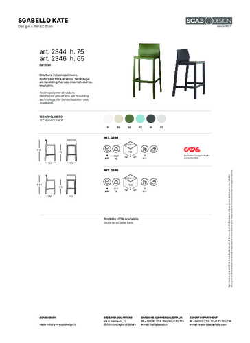 Řadu plastových židlí KATE pro italského výrobce SCAB navrhli designéři Arter & Citton. Tuto kolekci lze považovat za originální spojení minimalistického, elegantního a retro designu. Židle a barové židle, které dodáváme v několika jednobarevných provedení, je vyrobena z recyklovatelného technopolymeru. Modely židlí nbaízíme s područkami i bez. Žilde KATE dodají příjemnou atmosféru jakékoli místnosti, ale také venkovní terase hotelu, restaurace, kavárny ale i domácnosti.
