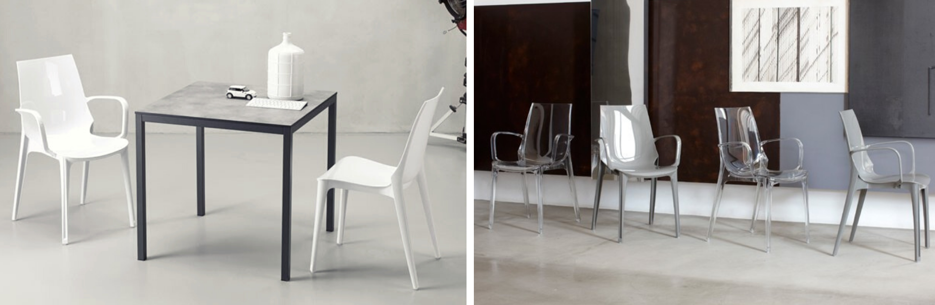 Kolekci tvoří stohovatelné židle, které pro italského výrobce SCAB navrhli Artera a Cittona. Jemné a nadčasové tvary židlí perfektně zapadnou do moderního prostředí a nemusíte se jej bát umístit ani do exteriéru. Celá židle je vyrobena z polykarbonátu a nabízíme je v provedení s područkami i bez. Vybírat můžete z několika provedení: průsvitný, průsvitný kouřově šedý, lesklý bílý, lesklý holubí šedý odstín.