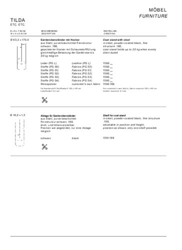 Praktický pouf s věšákem TILDA je všestranný a zajímavý interiérový doplněk, který kombinuje pohodlnou stoličku s odkladovým místem. Představuje kreativní spojení protikladů, kdy se funkce setkává s estetikou. Stabilní konstrukce je vyrobena z práškem lakovaného kovu v černé barvě. Práškové lakování kovu zaručuje celistvou vrstvu barvy bez nutnosti její obnovy i po letech používání. Kovová nosná tyč udrží až 20 kg při rovnoměrném rozložení. Oděvy lze zavěsit pomocí ramínek. Pouf je čalouněný látkou, kterou si vyberete ze široké škály barev. Věšák je vybaven malou nastavitelnou policí pro ukládání každodenních nezbytností, jako jsou mobilní telefony a klíče. Díky svému originálnímu zpracování působí velice efektně i jako samostatný designový prvek, který ohromí každou vaši návštěvu. Věšák s poufem TILDA je vhodný nejen do moderních interiérů, ale také do kancelářských či hotelových prostorů. Dodejte svému interiéru nádech minimalismu.