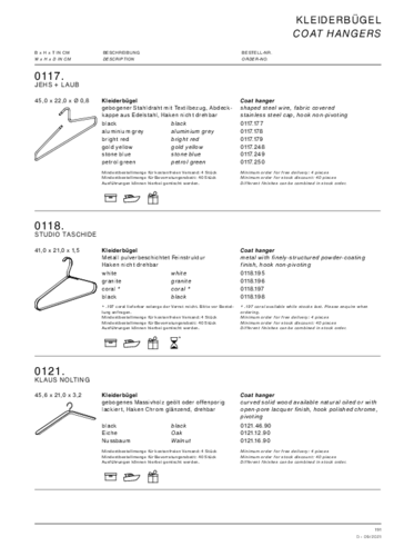 Bez šikovného ramínka se v šatní skříni, šatně nebo na věšáku zkrátka neobejdete. Designové ramínko na oblečení 0117 má praktické zaoblené tvary a poslouží k zavěšení svršků i kalhot. Vyrobené je z bytelného ocelového drátu obaleného textilií, proto je velmi lehké a vaše garderóba na něm bude doslova jako v bavlnce! Na výběr máte ze 3 barevných provedení. Ramínko 0117 si bude nejlépe rozumět s designovými věšáky z dílny SCHÖNBUCH. Vybavte si domácnost i kancelářské prostory tímto praktickým doplňkem, který oceníte vy, vaše rodina, vaši hosté i klienti.