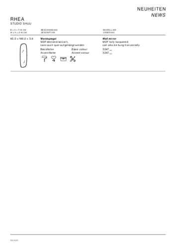 Designové zrcadlo RHEA je zosobněním moderního minimalismu. Elegantní štíhlý rám z lakované MDF se vine okolo oválu zrcadla a vám se zdá chvilku povědomé, jindy zase úplně nové a nevšední. Na zeď jej můžete zavěsit vertikálně jako samostatné zrcadlo, které pokryje téměř celou výsku zdi. Pokud jej zavěsíte horizontálně, například nad komodu, získáte efektní kontrast oblých tvarů zrcadla vůči pravoúhlosti skříně. Rám zrcadla je hluboký 2 cm a můžete si jej vybrat v matném finiši z pestré palety barevných odstínů.
