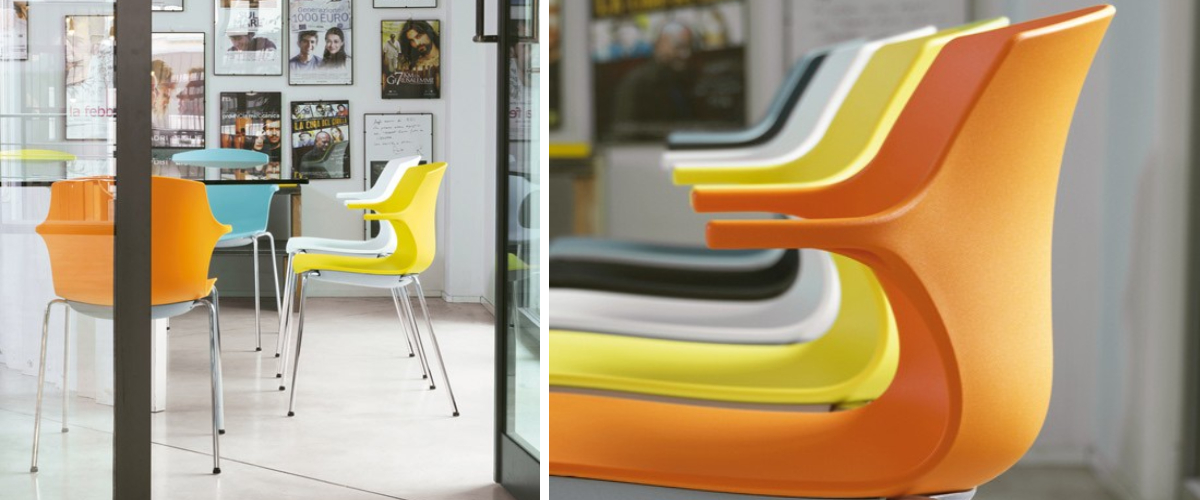 Designová plastová židle FRILL spojuje moderní tvary a materiály s vysokou odolností a kvalitou provedení. Originální židle, která zaručeně přitáhne pozornost, si navíc můžete objednat v žáruvzdorné variantě! Elegantně štíhlá čtyřnohá kovová podnož má zkosený zadní pár nohou pro dokonalou stabilitu. Na výběr je v bílém, černém či chromovém provedení. Plastový korpus sedáku a opěráku s minimalistickými područkami nabízíme v 8 trendy svítivých barevných odstínech. Židle FRILL je stohovatelná, mimořádně se proto hodí do zasedaček a konferenčních prostor.