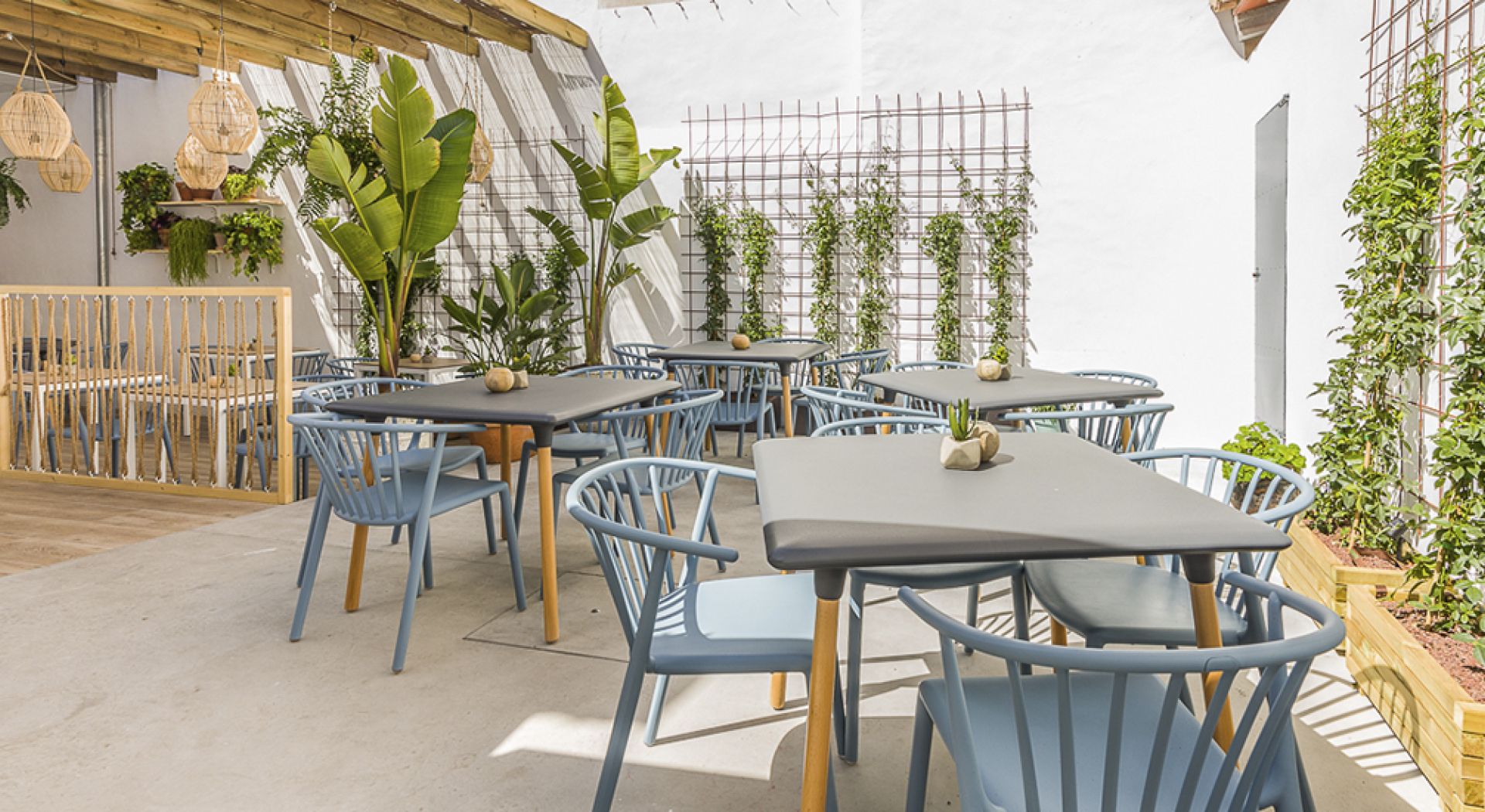 Táto nádherná kvetinová reštaurácia Ses Cosines, ktorá sa nachádza na slnečnej Malorke, stavila na stoličky Woody v elegantnej svetlomodrej farbe, ktoré v spojení s kvetmi a prírodnými boho lustrami nádherne oživujú celý interiér a dodávajú mu šmrnc. K stoličkám boli priradené jednoduché, ale štýlové a nadčasové stoly, ktoré sú funkčné a krásne a nevtieravo dopĺňajú celý interiér.