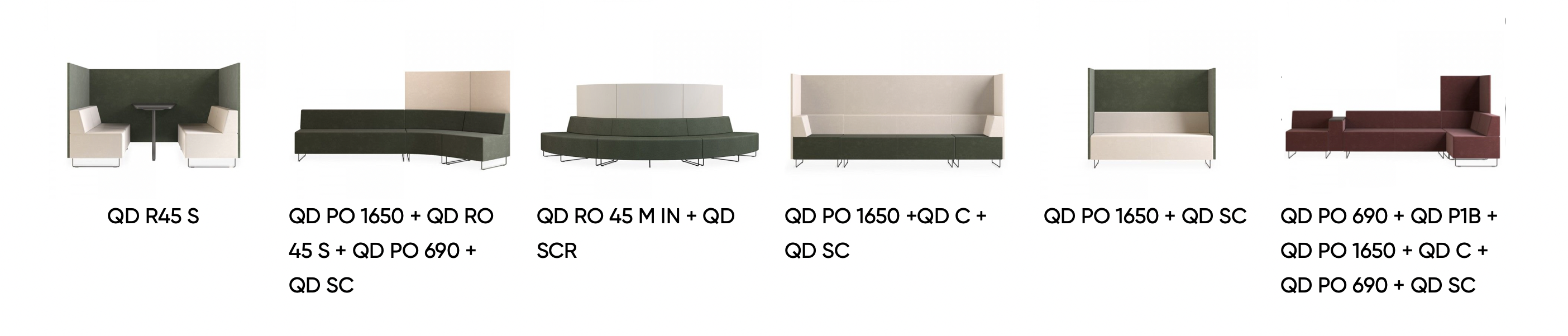 QUADRA je modulárny systém sedadiel, ktorý ponúka takmer neobmedzené možnosti konfigurácie. Z modulov možno vytvárať zostavy, ktoré viditeľne zlepšujú funkčnosť miestností, priechodov a vytvárajú príjemné miesta na stretnutia alebo rozhovory.