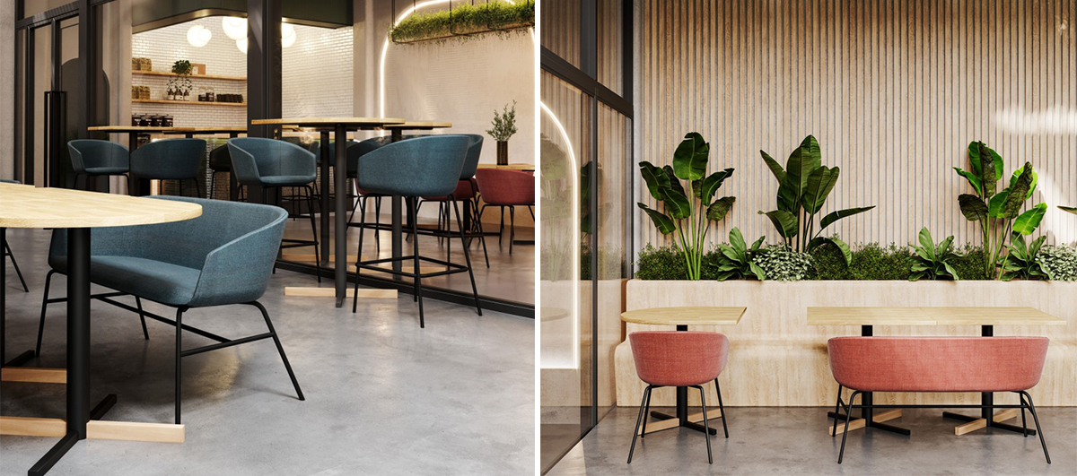 Pohodlie v spoločných priestoroch pracoviska alebo pri barovom stole. Vysoká lavica OX:CO pre dve osoby je vhodná na rôzne príležitosti. Predstavuje dokonalú rovnováhu medzi dizajnom a funkčnosťou. Plášť lavice je mäkko čalúnený a čalúnený látkou v širokej škále farieb. Kovová základňa je k dispozícii v mnohých farbách s práškovým nástrekom. K dispozícii sú dve rôzne výšky a nízka verzia. Nie je potrebné robiť kompromisy medzi praktickosťou a estetikou!