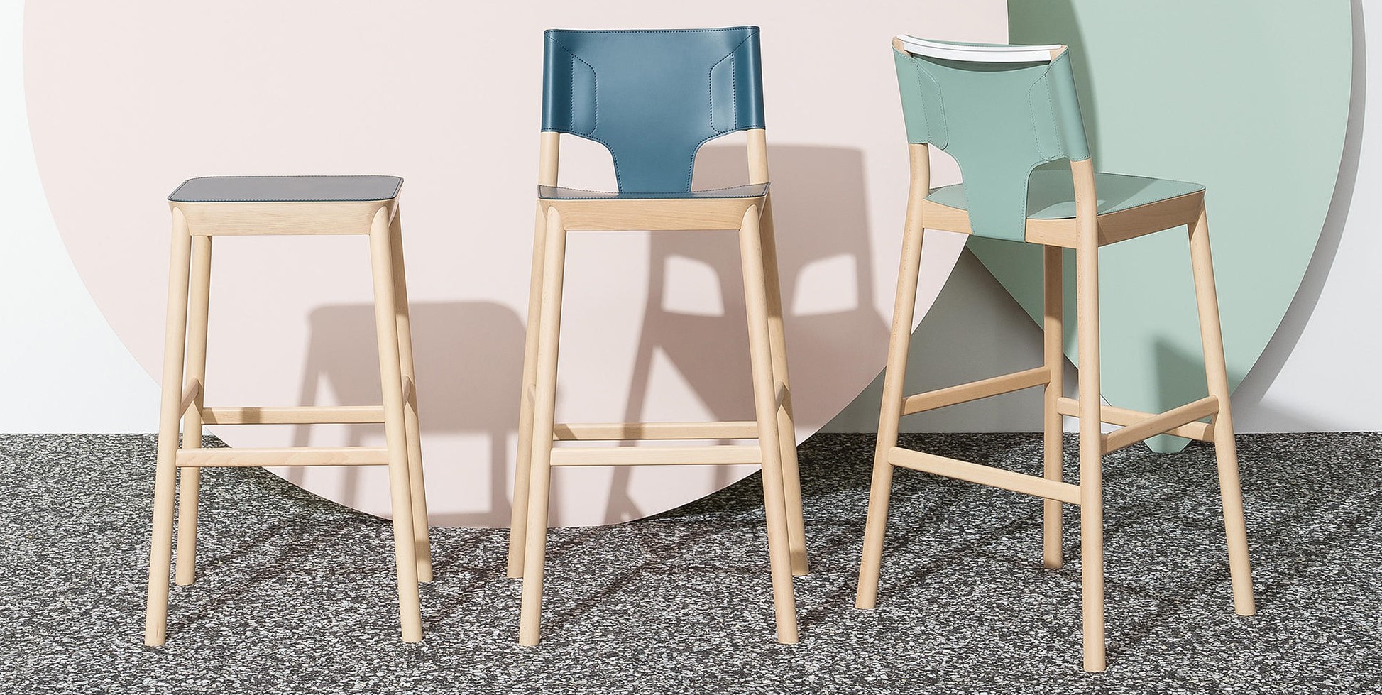 Kolekcia Marimba, ktorú navrhol architekt a dizajnér Emilio Nanni, pozostáva z modelu stoličky a dvoch verzií barovej stoličky (s operadlom alebo bez neho). Nábytkové kusy sú vyrobené z masívneho moreného alebo lakovaného bukového dreva so sedadlami a operadlami z kože alebo jemnej koženky. Praktická lakovaná oceľová rukoväť uľahčuje manipuláciu.
