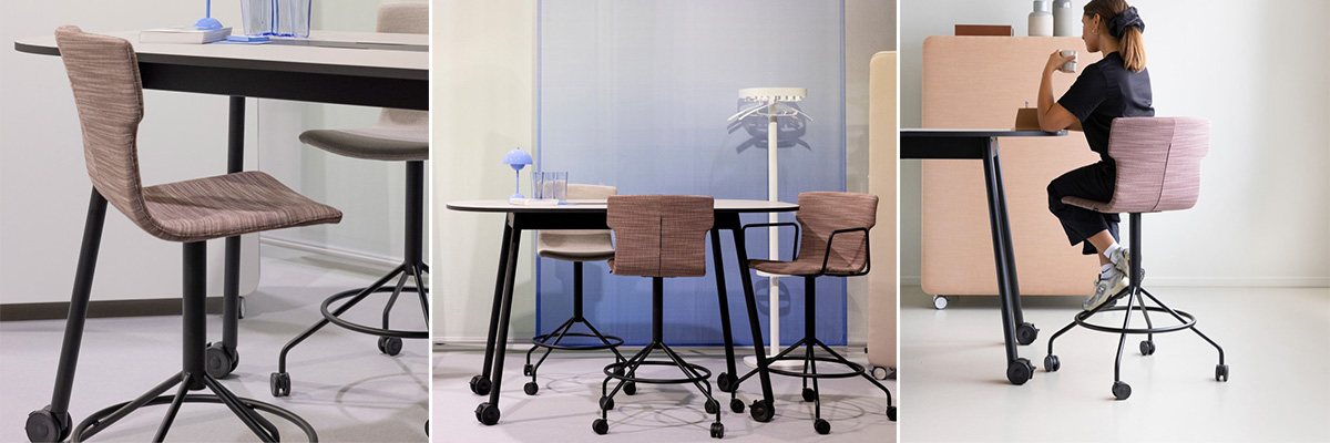 Pohodlná opora na sedenie pri práci a dizajnový kúsok. Stolička CO-CHAIR HIGH, ktorú navrhol Peter van de Water, sa vďaka svojej výške hodí k vysokým stolom alebo barovým pultom. Môžete ju používať v kancelárii aj v spoločnom pracovnom priestore. Otočná základňa s kolieskami je vyrobená z ocele s práškovou povrchovou úpravou v čiernej alebo bielej farbe. Je vybavená aj kruhovou opierkou na nohy, ktorá znásobuje pohodlie pri sedení. Škrupina so stredne vysokým operadlom je čalúnená v širokej škále farieb látok. Ponúkame aj verziu s podrúčkami.
