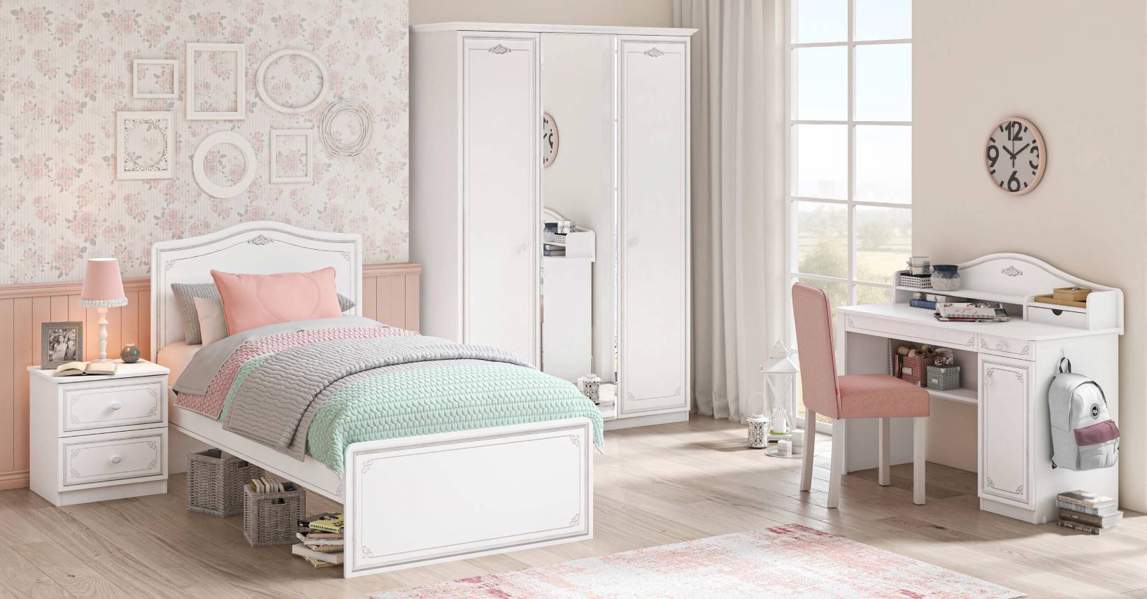 Detský písací stôl Selena Grey je nevyhnutným spoločníkom do detských a študentských izieb. Vďaka romantickému dizajnu v duchu celej kolekcie zaujme najmä dievčatá. Veľká pracovná plocha a dostatok úložného priestoru robia zo stola ideálne miesto na prácu aj zábavu.