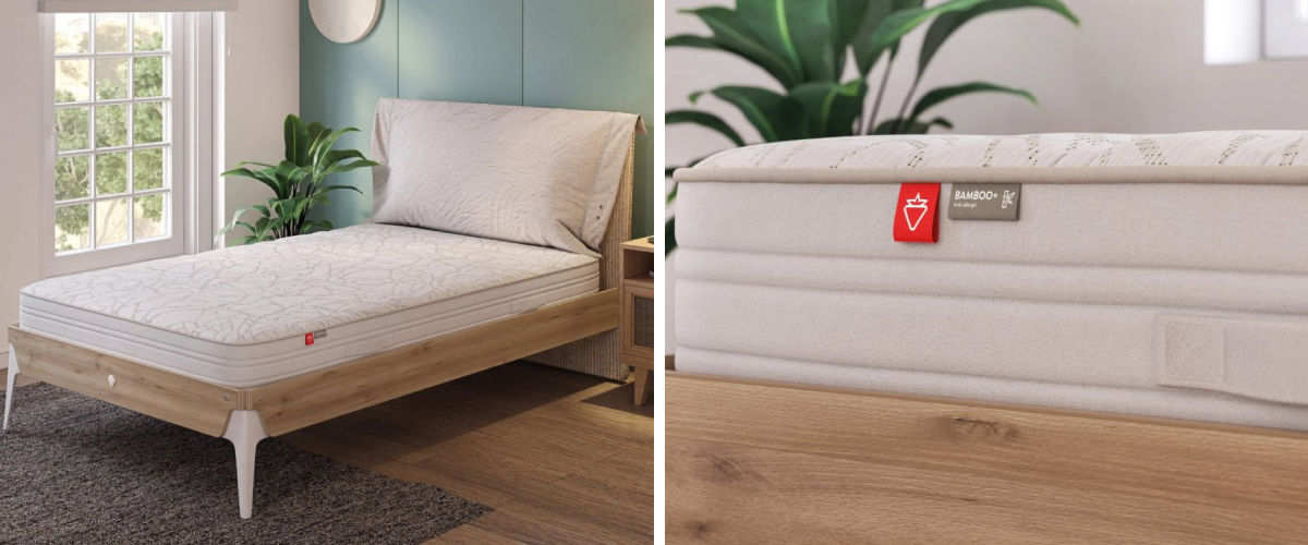 Zloženie matraca BAMBOO+ podporuje maximálnu relaxáciu počas spánku. Skladá sa z taštičkových pružín, vrstvy PUR peny a bambusových vlákien. Bambusové vlákna sú antibakteriálne, hypoalergénne a vynikajúco odvádzajú prebytočnú vlhkosť a pot. Pokožka tak môže bez problémov dýchať. V lete mierne chladí a v zime príjemne hreje. Z matraca BAMBOO budete vždy vstávať oddýchnutí, čistí a pripravení na nový deň! Poťah matraca sa nedá sňať.
