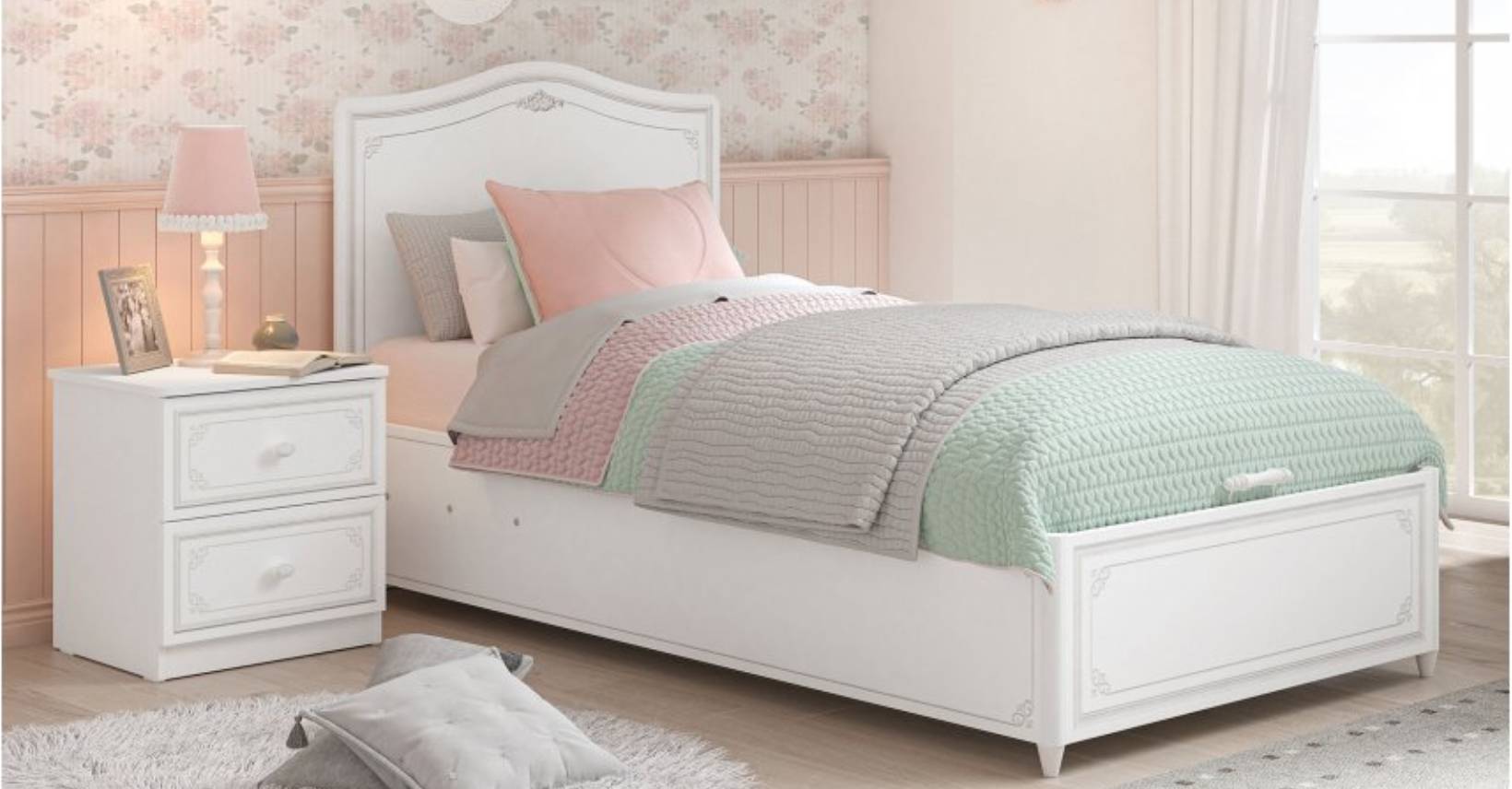 Posteľ SELENA GREY ponúka maximálne pohodlie a dostatok priestoru pre každého vďaka rozmerom postele 100 x 200 cm. Hlavnou výhodou je bezpochyby praktický úložný priestor na hračky, knihy a ďalšie potreby! Vetranie tohto priestoru zabezpečujú vetracie otvory. Otvára sa z prednej strany postele, čo je pre dieťa veľmi jednoduché a bezpečné .