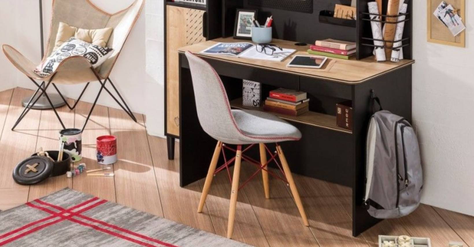 Tento praktický a štýlový písací stôl s mimoriadne veľkou pracovnou plochou je ideálnou voľbou do pracovne, v ktorej prevláda čierna farba, či už pre dievčatá alebo chlapcov. Vďaka svojmu jednoduchému štýlu a dizajnu - kombinácii čiernej farby s dubovým dekorom - vytvára skvelú atmosféru na prácu alebo štúdium.