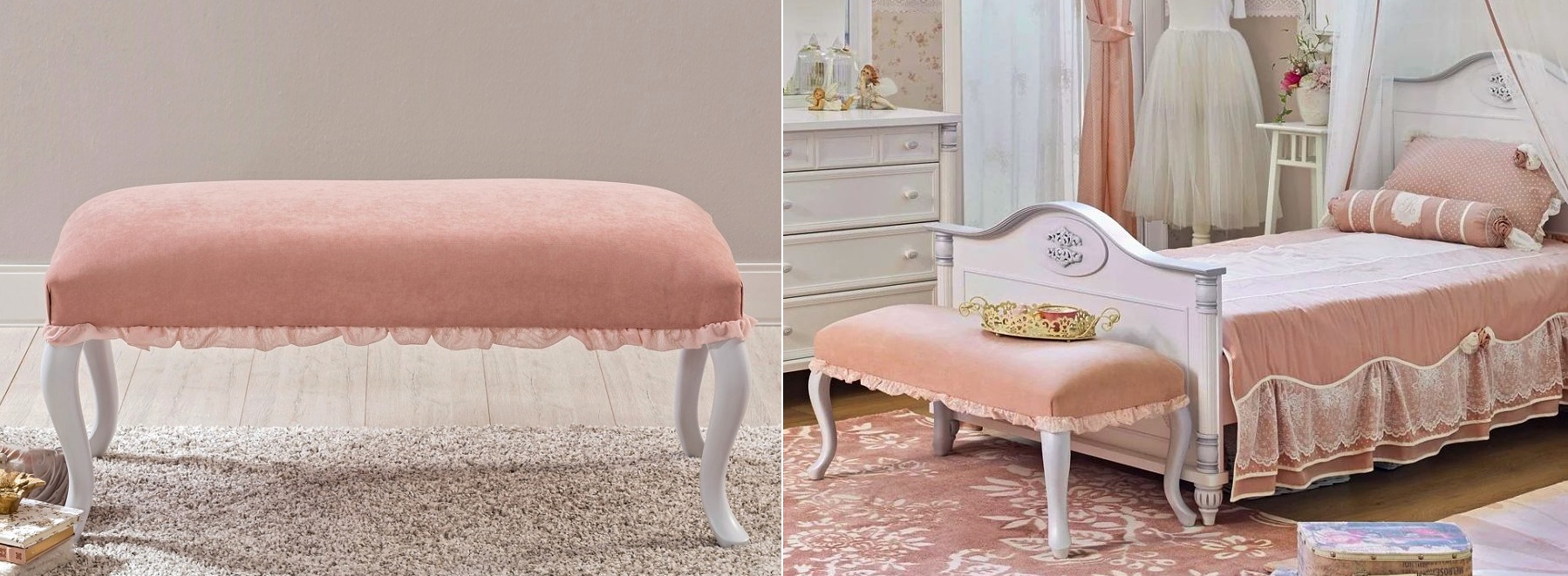 Precízne spracovanie, svetlé odtiene, kvalitné materiály. Táto exkluzívna kolekcia nábytku ROMANTIC pre dievčatko, ktoré chce mať svoje vlastné skutočné kráľovstvo, ponúka niekoľko typov šatníkových skríň, detských a študentských postelí, prísteliek, písacích stolov, nočných stolíkov, komôd a knižníc. Nežnú atmosféru potom dotvárajú detské záclony a závesy alebo kúsky z kolekcie FLORA, ktorá je podobná tejto kolekcii, a doplnky z kolekcie DREAM, kde nájdete stoličky, osvetlenie, posteľnú bielizeň a taburetky.