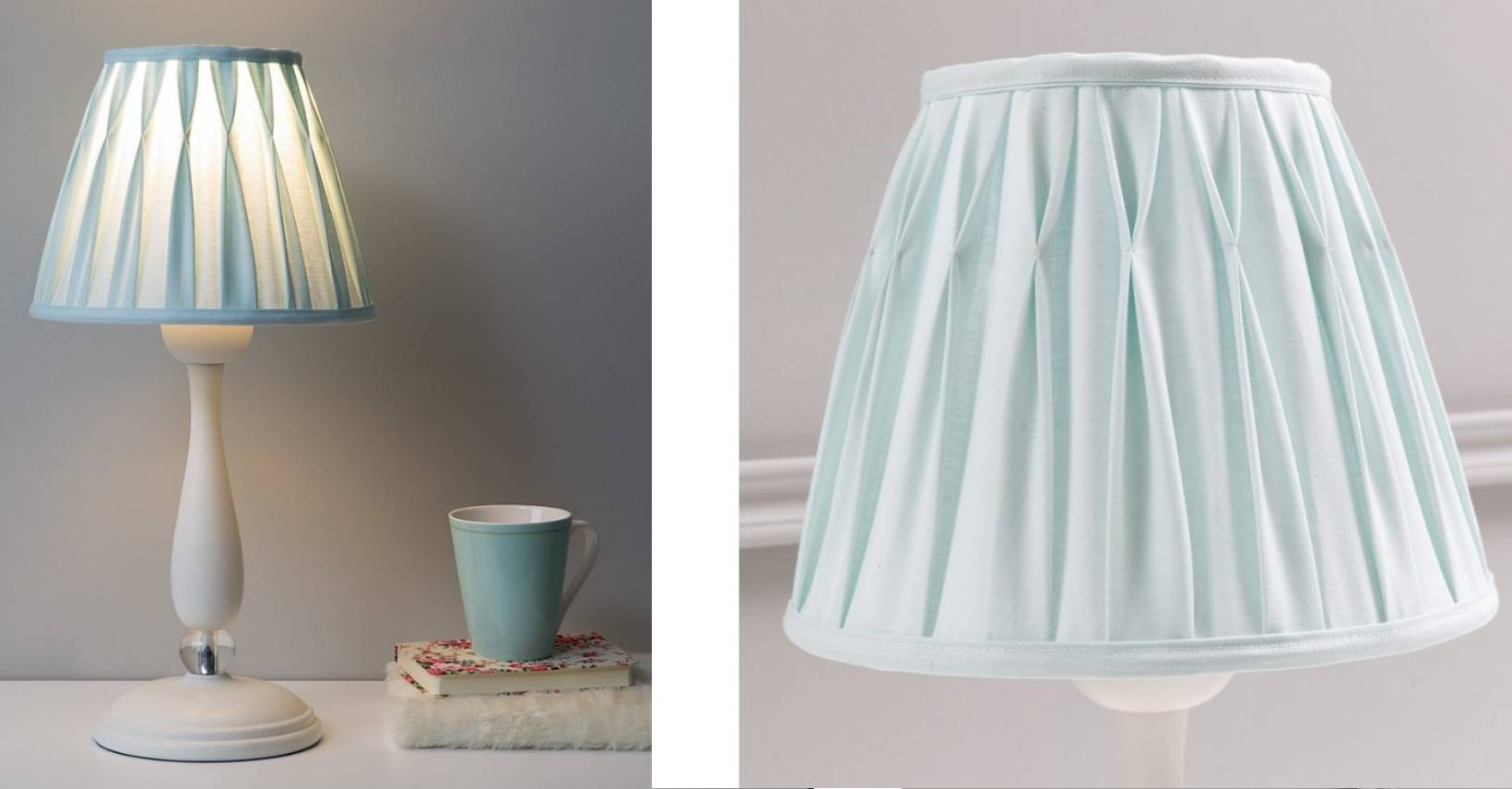 Táto krásna lampa bola vytvorená špeciálne pre dievčenskú izbu a je vhodná pre kolekcie Romantica, Flora alebo Selena. Má tienidlo potiahnuté látkou mätovej farby , bielu lakovanú drevenú nohu a ozdobnú priehľadnú guľôčku.