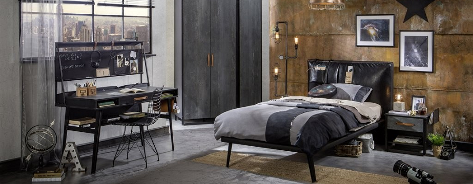 Šatníky sa dodávajú v dvoch verziách - študentský šatník DARK METAL s posuvnými dverami a trojdverový šatník Dark Metal. Postele majú kožené čelá s ručne šitými vreckami, aby mal obyvateľ spálne všetko po ruke. A každý študent ocení písací stôl s veľkou doskou a priestrannou knihovňou. Súčasťou kolekcie je samozrejme aj posteľ s rozmermi 100 x 200 cm.