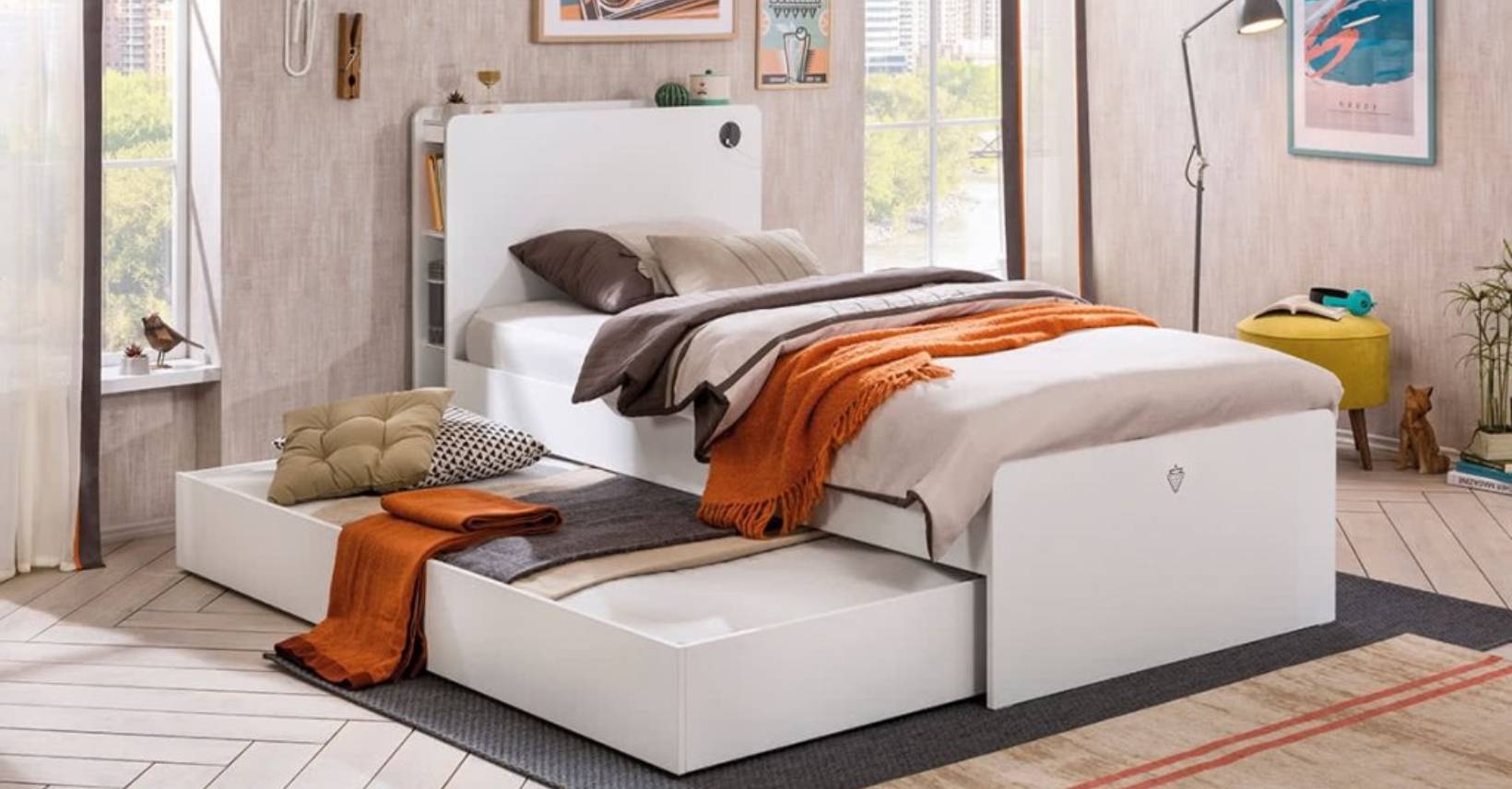 Matrac si objednajte samostatne, odporúčame objednať priamo u výrobcu Čilek. Výsuvná časť je uložená samostatne pod posteľou. Môžete ho vysunúť z ľavej alebo pravej strany postele. Jednoduchú manipuláciu zabezpečujú kolieska. Nosnosť je 100 kg. Tento moderný nábytok do študentskej izby sa určite bude páčiť dievčatám aj chlapcom!