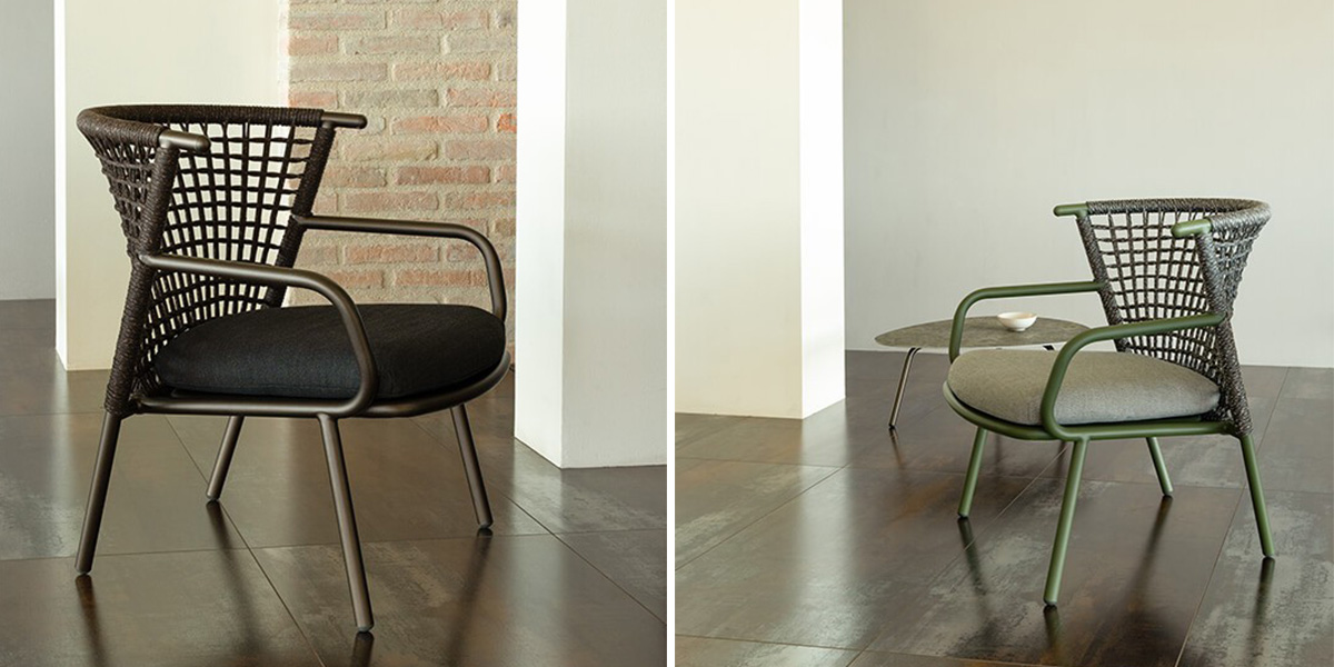 Kreslo NEF, ktoré navrhol dizajnér Patrick Norguet, zaujme svojou ľahkosťou a výrazným grafickým dizajnom. Inšpiroval sa líniami teplovzdušných balónov, čo sa odráža v elegantne tvarovanom operadle s ozdobným výpletom zo syntetického lana. Hliníková konštrukcia v niekoľkých dostupných farbách zaručuje pevnosť, stabilitu a odolnosť, zatiaľ čo výplet zo syntetického lana dodáva kreslu osobitý charakter a vizuálnu ľahkosť. Čalúnené sedadlo ponúka ešte väčšie pohodlie. Kolekcia NEF je ideálna na použitie v interiéri aj exteriéri v súkromných a komerčných priestoroch, ako sú terasy, reštaurácie alebo hotelové salóniky. Spája v sebe pohodlie, odolnosť a dizajn, ktorý prirodzene zapadá do prostredia, kde sa kladie dôraz na harmóniu materiálov, tvarov a farieb.