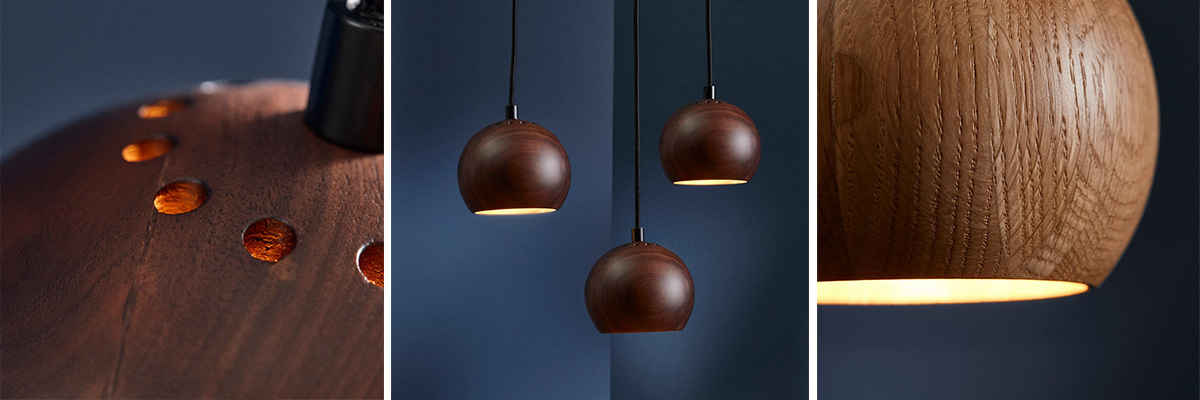 Aktualizovaný vzhľad závesných svietidiel BALL WOOD od Bennyho Frandsena rešpektuje pôvodný dizajn z roku 1968, ale zároveň prináša modernú estetiku. Tienidlo je vyrobené z dubového alebo orechového dreva s certifikátom FSC a je k dispozícii aj v čiernom alebo bielom laku. V hornej časti je perforované, čo mu dodáva dávku originality. BALL zažiari samostatne aj v skupine a hodí sa do všetkých typov interiérov. Ponúkame aj sklenenú verziu.
