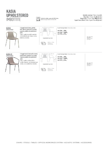 Kolekcia KASIA má minimalistický vzhľad pripomínajúci klasický záhradný nábytok, ale nenechajte sa oklamať. Pohodlná pohovka vás pozýva na posedenie vnútri alebo na terase či v záhrade. Kovová konštrukcia je ošetrená povrchovou úpravou odolnou voči poveternostným vplyvom a v kombinácii s technopolymérovou úpravou sedadla zvyšujúcou pohodlie odolá aj tým najnáročnejším podmienkam. Stoličky sú stohovateľné a odolné, takže vydržia každodenné používanie v domácnostiach, baroch, reštauráciách alebo hoteloch v skvelej kondícii. Kolekcia KASIA dodá každému komerčnému prostrediu nádych ležérnej elegancie.