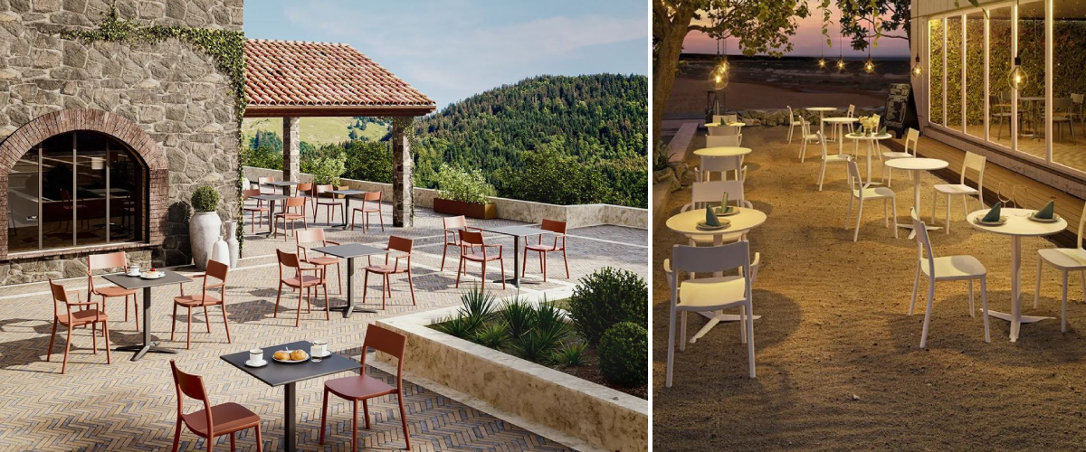 Minimalistická stolička TO-ME je univerzálny a nadčasový kúsok, s ktorým nič nepokazíte. Vďaka svojmu zjednodušenému vzhľadu ho môžete použiť na záhradné párty, vynikne na každej terase a bude vkusným doplnkom vonkajších priestorov reštaurácií alebo barov. Model je vyrobený z vysoko odolného plastového materiálu technopolyméru alebo v jeho recyklovanej verzii. Technopolymér odolá všetkým poveternostným podmienkam - od snehu až po priame slnečné teplo. Stolička stojí na stabilnej štvornohej základni a vďaka kompaktnému operadlu pôsobí veľmi vzdušne. Na výber je moderná paleta farieb, podrobnosti nájdete v našom konfigurátore.