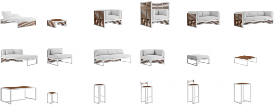 DNA je kolekcia vonkajšieho nábytku inšpirovaná jemnou hrou svetla a tieňa v tradičných stredomorských okeniciach, ktorú vytvoril dizajnér José Antonio Gandía-Blasco Canales. Lavičky, ležadlá, kreslá, stoly a pohovky sa dokonale začlenia do každého prostredia: od súkromných záhrad až po veľké inštalácie. Jednotlivé diely možno navzájom kombinovať a vytvoriť tak harmonický celok podľa vašich predstáv.