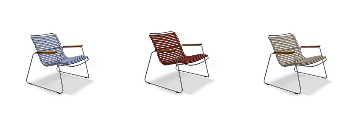 Kolekciu CLICK od spoločnosti HOUE si zamilujete pre jej nadčasový severský dizajn, výber kvalitných materiálov a predovšetkým komfort pri používaní. Značka je držiteľom certifikátu EÚ ECOLABEL pre výrobky šetrné k životnému prostrediu. Dizajnér Henrik Pedersen sa zameriava na neoskandinávsky dizajn s dôrazom na jednoduchosť, originalitu a pohodlie. Kolekcia je vyrobená z kovových a plastových lamiel. V tejto minimalistickej kolekcii nájdete aj ďalšie kreslá, ležadlá a stoličky v rôznych farbách. Na vonkajšie použitie možno nábytok kombinovať so stolíkmi z kolekcií BEAM, FLOR, LEAF, CIRCLE, CIRCUM, EYELET, SKETCH alebo FOUR. Podnožka CLICK poskytuje jedinečný komfort pri relaxácii v záhrade.