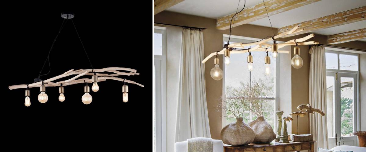Dizajnové závesné svietidlo DRIFTWOOD SP6 je kúsok pre všetkých, ktorí majú radi surový prírodný dizajn, potrebujú si zariadiť štýlovú drevenicu alebo chatu, alebo dokonca moderný mestský interiér v rozmarnom tóne. Pôvodný luster má kovovú stropnú podstavu. Objímky žiaroviek rôznych tvarov a veľkostí sú vyrobené z brúseného kovu v zlatom vyhotovení. Štruktúra tienidla je vyrobená z prírodných konárov v náhodnom usporiadaní. Všetko je bezpečne upevnené na nenápadných kovových lanách. Dizajnový luster DRIFTWOOD SP6 bude vašou odpoveďou na skostnatené interiérové trendy!