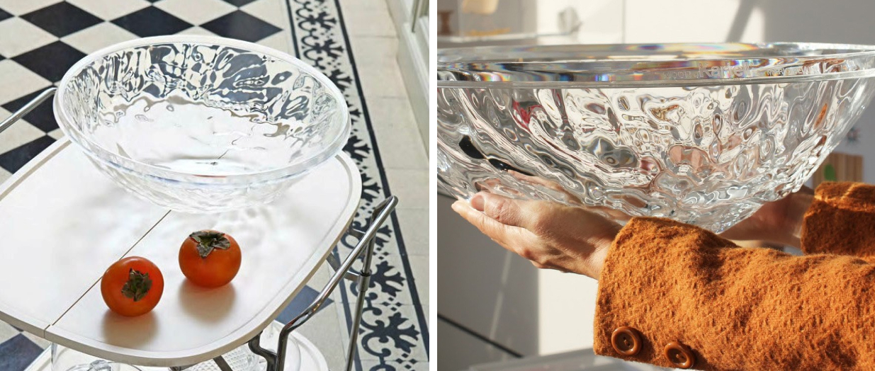 Túto jedinečnú misu Moon vytvoril svetoznámy dizajnér Mario Bellini. Vďaka svojej jedinečnej štruktúre vyniknú nádherné reflexné vlastnosti materiálu, na povrchu ktorého sa čarovne odráža svetlo. Rozmery misky sú 45 x 15 cm (priemer x výška). Môžete si vybrať z niekoľkých variantov z priehľadného lesklého plastu.