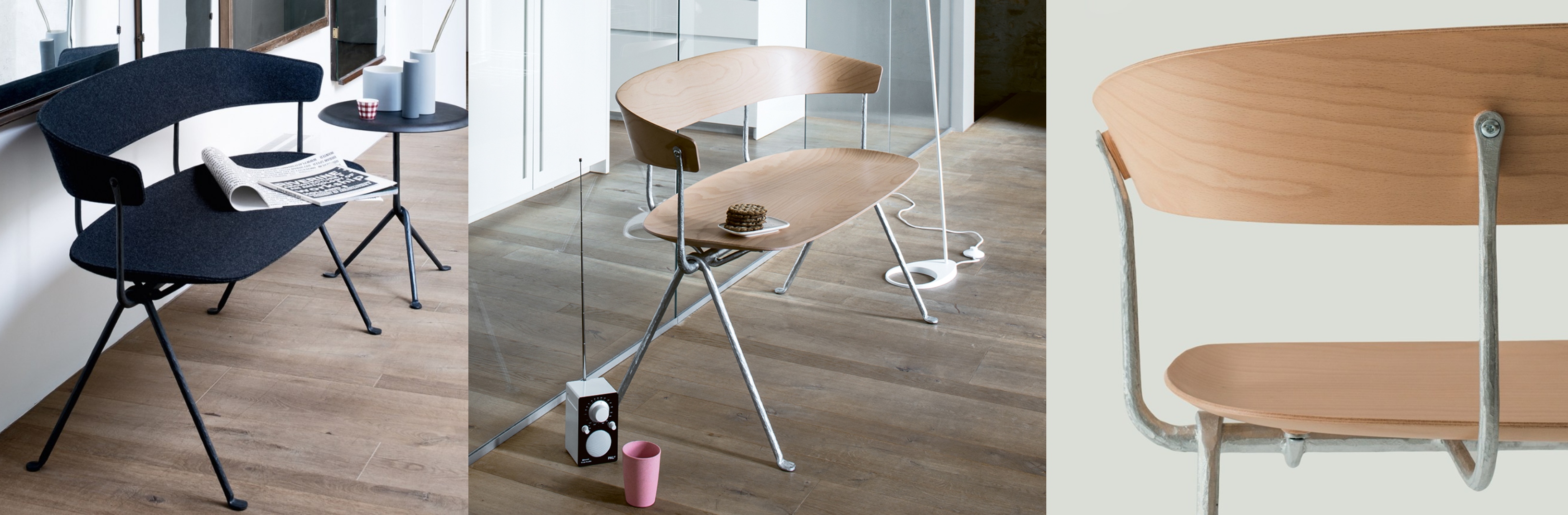 Táto veľmi estetická lavica, ktorú navrhlo známe dizajnérske duo, je obľúbeným riešením pre kancelárie, kaviarne alebo knižnice. Minimalistický chrómový dizajn lavice Officina vyzerá skvele v akomkoľvek priestore, má nádych modernosti, ale zároveň do priestoru vnáša trochu bohémskej atmosféry francúzskych kaviarní. Môžete si vybrať z niekoľkých farieb podstavca a sedadla. Lavica Officina má konštrukciu z tepaného železa s lakovanou alebo pozinkovanou povrchovou úpravou, sedadlo a operadlo sú čalúnené kvalitnou látkou Divina.