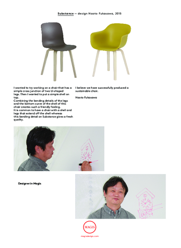 Táto minimalistická dizajnová kolekcia značky Magis vznikla na základe nápadu dizajnéra Naota Fukusawu, ktorý chcel vytvoriť stoličku, ktorá by bola známa a dôverne známa, ale zároveň by v sebe mala niečo inovatívne. Stolička, ktorú si predstavoval, mala konštrukciu z dvoch nôh v tvare písmena U, ktoré sa pretínali v jednoduchom kríži, a jednoduchého sedadla umiestneného na vrchole. Svoj nápad doviedol takmer k dokonalosti, oblé tvary nôh v kombinácii so zakriveným sedadlom vytvárajú priateľskú atmosféru a evokujú domov.