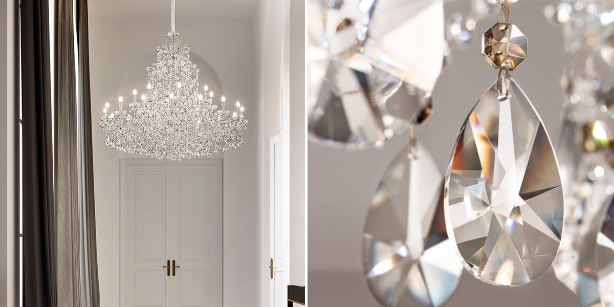 Moderná interpretácia klasického krištáľového lustra a luxusná dominanta interiéru. Prepychové závesné svietidlo AQABA ozdobí vstupnú halu, hotelovú halu, reštauráciu, spálňu alebo obývačku. Pozostáva z pozinkovanej oceľovej konštrukcie v zlatej alebo chrómovej farbe, sklenených ramien a trblietavých kaskád príveskov z polobrúseného a brúseného skla a prvotriedneho krištáľu.Zdrojom svetla je 24 LED žiaroviek E14 s výkonom max. 10 W, ktoré nie sú súčasťou dodávky. Môžete si však vybrať aj integrovaný nastaviteľný systém žiaroviek RGB alebo DW LED. Ak máte akékoľvek otázky, neváhajte nás kontaktovať. Chceli by ste inú veľkosť alebo doplnkové svietidlá, ktoré by zjednotili celú vašu domácnosť alebo firmu? Preskúmajte celú kolekciu AQABA.